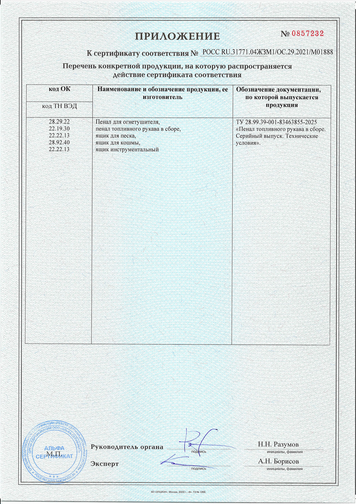 ДОКУМЕНТЫ НА ПРОДУКЦИЮ: